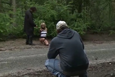 Связанная блондинка плачет от унижений и жёсткого траха в лесу