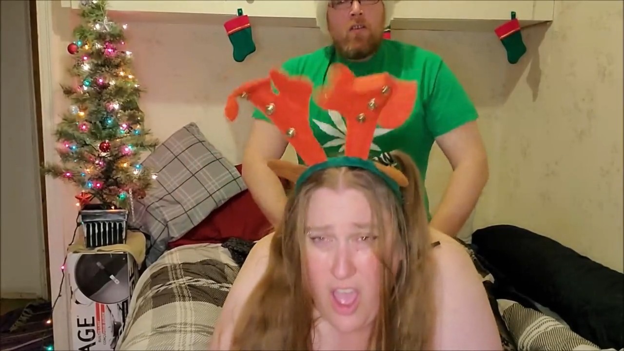 Санта пришёл к толстушке и подарил ей член в огромную задницу